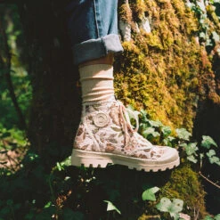 Craquez pour l’originalité avec la boots pour femme Authentique qui cette saison se pare d’un tissu jacquard fabriqué en France. Les motifs floraux sont très tendances et frais pour la saison. Cette chaussure est vulcanisée dans une semelle en caoutchouc naturel ce qui la rend légère et très confortable.
